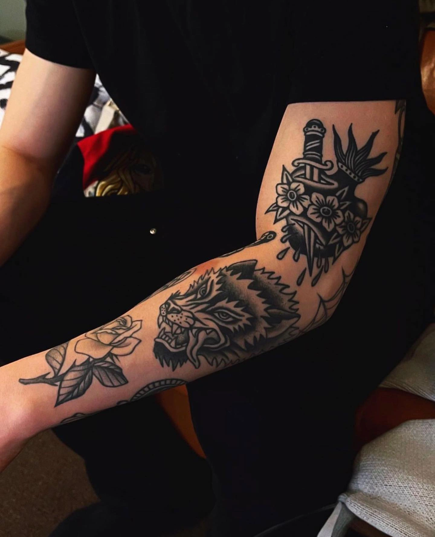Уход: аккуратно промойте татуировку с мылом под водой комнатной температуры. Промокните бумажным полотенцем. Нанесите тонким слоем мазь Бепантен. Закрепите пелёнку внахлёст, не туго.